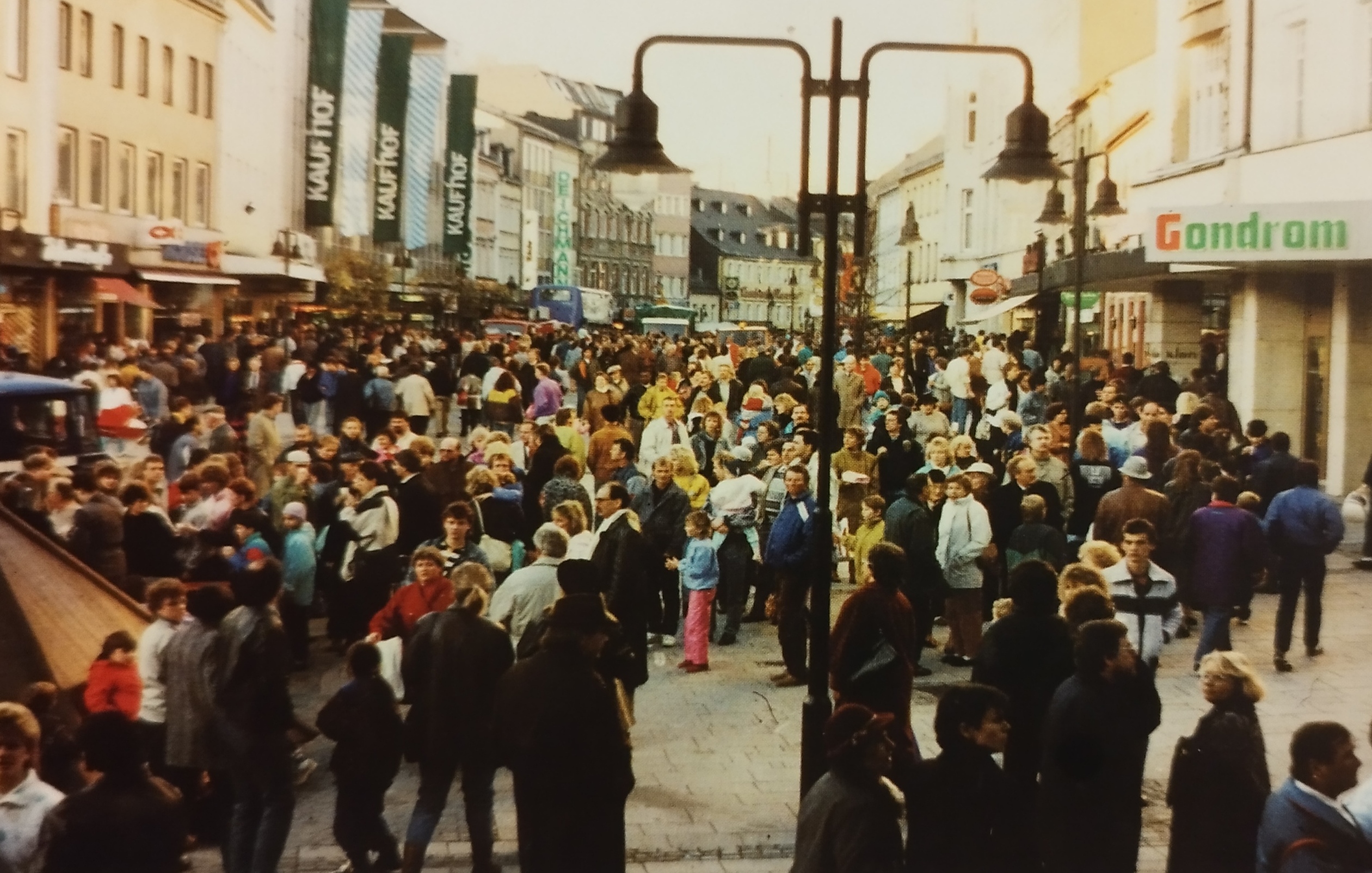 Bis zu 100 000 DDR-Bürger strömten täglich in die Hofer Innenstadt, so dass diese sogar teilweise gesperrt werden musste. Die DDR-Bürger holten sich in Hof ihr Begrüßungsgeld ab und gaben es in der Hofer Innenstadt direkt wieder aus. Hof erlebte ein Wirtschaftswunder, in dessen Folge viel Geld verdient und in zahlreiche, teils kostspielige Projekte gesteckt wurde. Ein nachhaltiges Wirtschaftswunder blieb jedoch aus, da die Grenzregionen im Osten neue Einkaufsmöglichkeiten schufen. Bayern erlebte nach der Wende durch die Zuwanderung von Arbeitskräften aus der ehemaligen DDR und die Erweiterung des Marktes einen wirtschaftlichen Aufschwung.