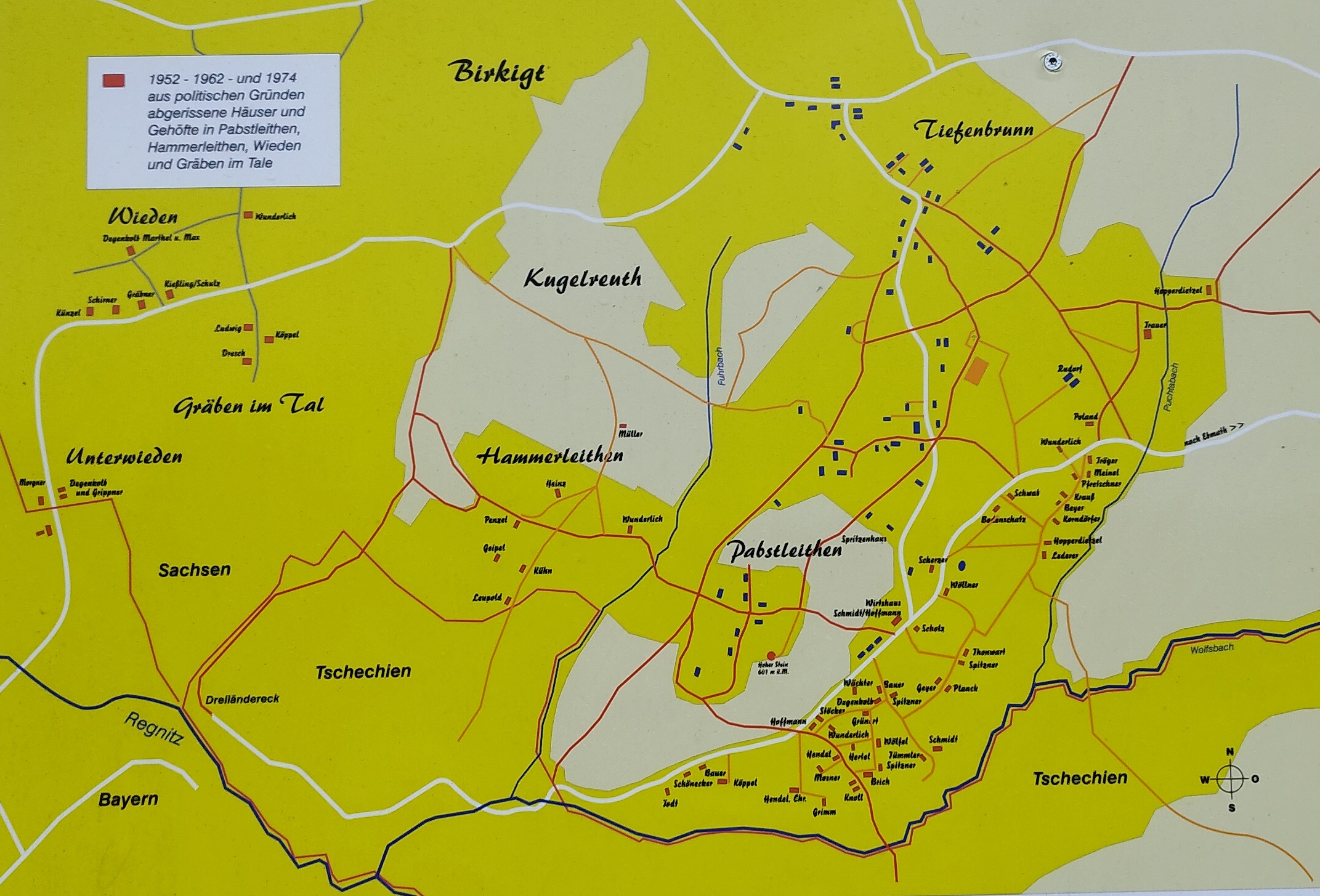 1952 und 1961 wurden aus Pabstleithen, Hammerleithen, Gräben im Tale und Wieden politisch unliebsame Personen im Rahmen der Aktionen "Ungeziefer" und "Kornblume" zwangsumgesiedelt. Die Dörfer wurden geteilt in Ausgesiedelte ("Ungeziefer") und denen, die bleiben durften. Dies führte zu Brüchen bis in die Bekanntschaft und Verwandtschaft.